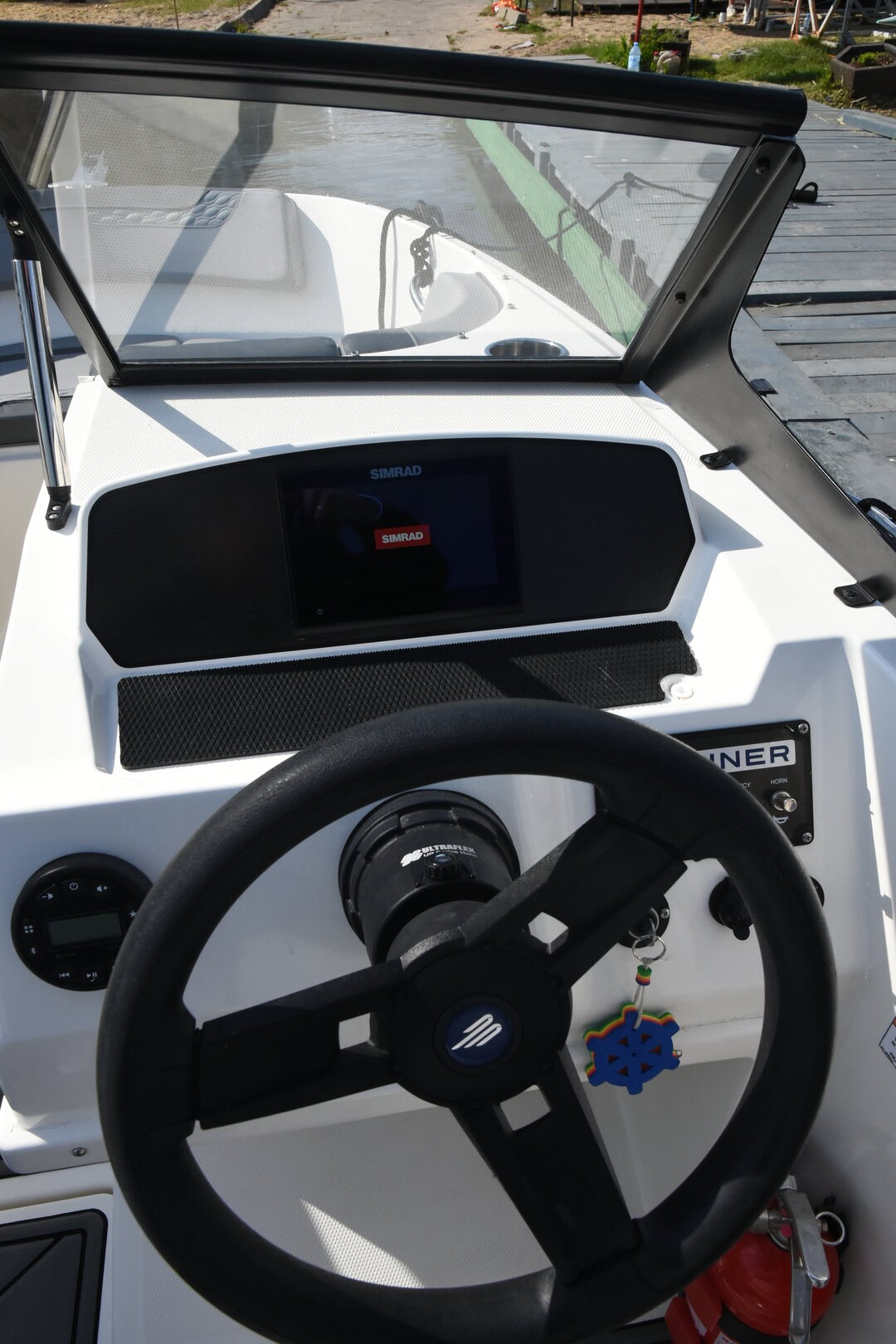 Ale Bayliner M19 to nie tylko relaks. Silnik 115 KM sprawia, że łódź wchodzi w ślizg dosłownie w kilka sekund — i od razu czujesz to, czego szukasz: pełną kontrolę nad wodą. Motorówka jest niesamowicie stabilna na zakrętach, nie przechyla się tak jak wiele innych jednostek tej klasy. To zasługa kadłuba w kształcie litery M, który robi dokładnie to, do czego został zaprojektowany. Co ważne, silnik jest naprawdę ekonomiczny — kilka godzin dobrej zabawy na wodzie nie zrujnuje budżetu.