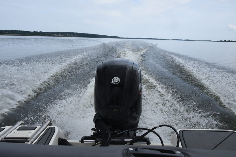 Wcześnie rano opuściliśmy port w Dziwnowie i skierowaliśmy się na Bałtyk. Było dość ciepło, wiała zachodnia bryza — warunki zachęcające. M19 zachowywała się dobrze na niskich falach, łódka szła z rozmachem pod stały wiatr. Nie obyło się bez kilku rozbryzgów, zwłaszcza przy bardziej otwartej przepustnicy i kursie pod fale. Jak na niewielką łódkę — M19 znakomicie sobie radzi na morzu.