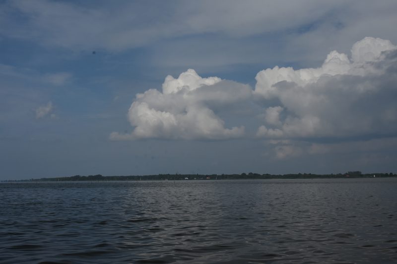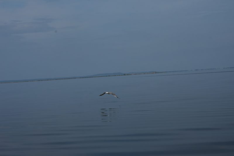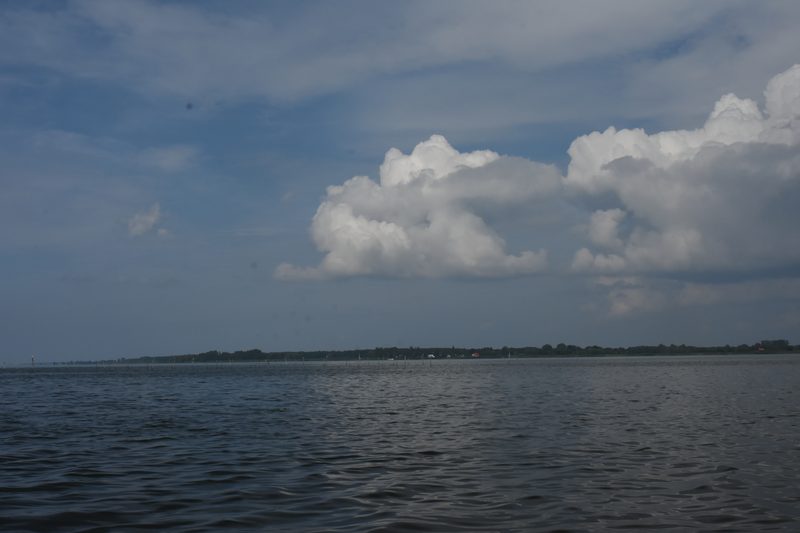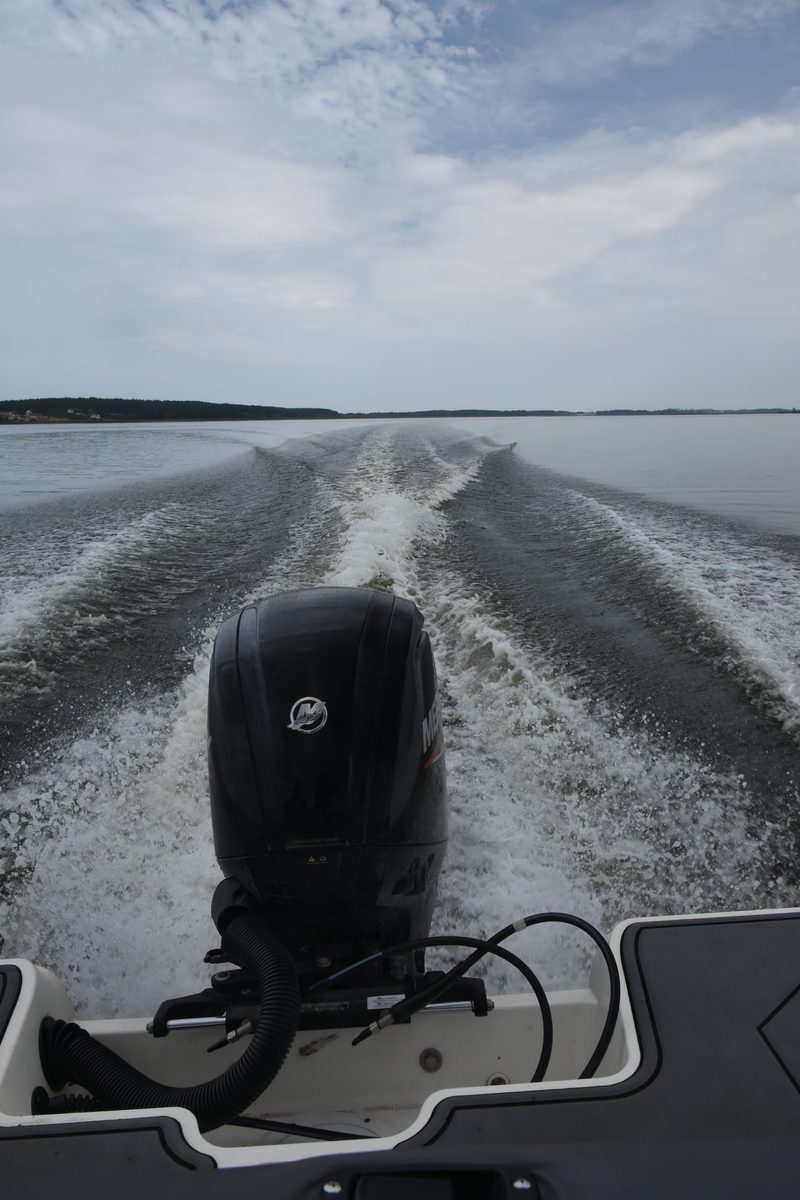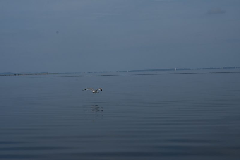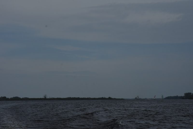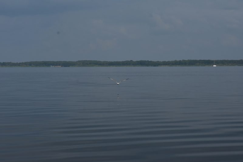 Reszta dnia upłynęła pod znakiem prawdziwie łaskawej pogody. Na Zalewie Kamieńskim i na Dziwnej momentami kołysało, bo na tych akwenach wiatr ma się gdzie rozpędzić. Jednak sam Zalew Szczeciński przypominał bardziej stół niż akwen wodny — zupełnie płaska woda. Dla stosunkowo małej łódki, pływanie po akwenie tak szerokim, że z jednej strony nie widać brzegu, robi naprawdę wrażenie. Zalew Szczeciński to nie jest małe jezioro: rozciąga się przez granicę polsko-niemiecką i łączy się z morzem przez Świnę. W taki spokojny dzień jak ten, ma skalę małego śródlądowego morza.