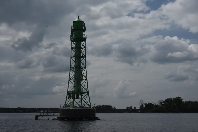 Przepływ przez Wolin to jeden z piękniejszych fragmentów trasy w tym rejonie. Płynęliśmy przez samo miasto — mijaliśmy mosty, nabrzeża, porty. Na uwagę zasługuje jedno z nabrzeży, przy którym można przycumować i wybrać się na spacer po mieście. Może następnym razem — tym razem chcieliśmy dotrzeć jak najdalej na wschód, więc płynęliśmy dalej.