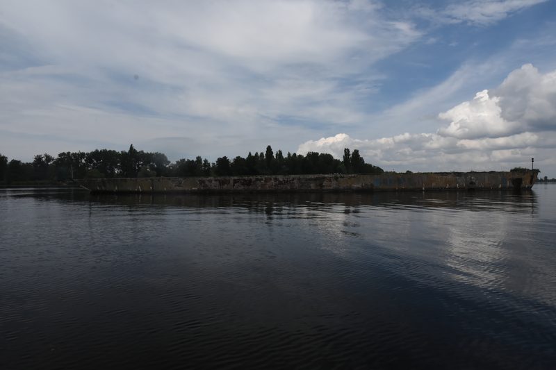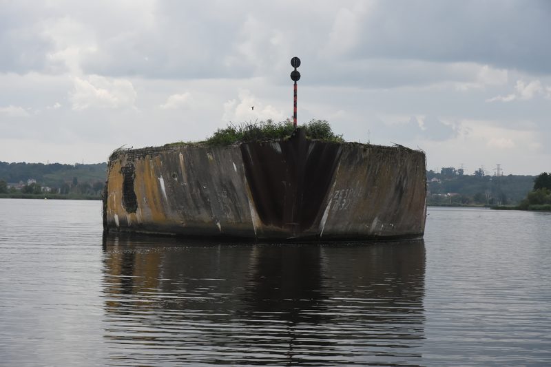 Naszym punktem docelowym był betonowiec — betonowy statek Ulrich Finsterwalder, który od czasów Drugiej Wojny Światowej powoli zapada się w płyciźnie koło Dąbia. Widok jest spokojny i trochę surrealistyczny: ogromna szara bryła w połowie zanurzona, pokryta znakami czasu, roślinnością, stanowiąca ostoję dla wielu ptaków.