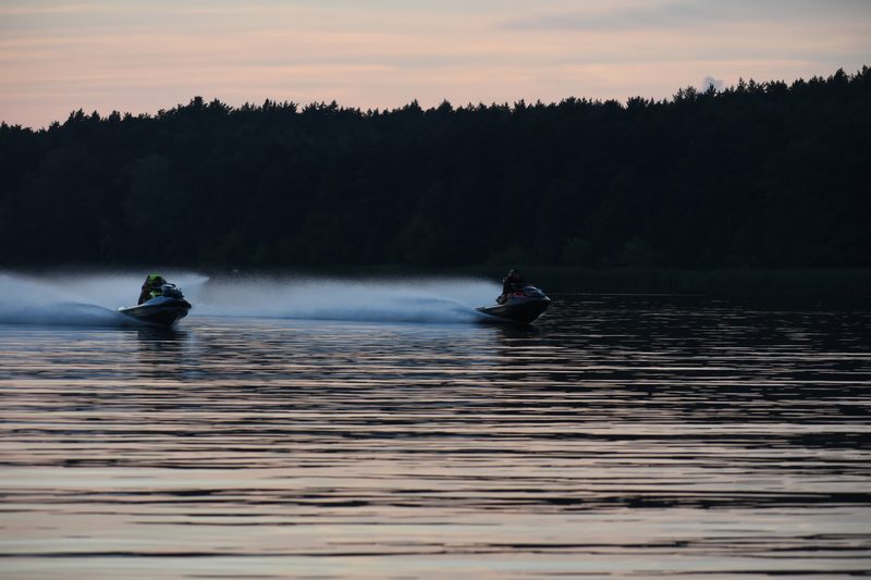 Nawet dwa śmigające skutery wodne przecinające horyzont nie zburzyły czaru. Wręcz przeciwnie — dodały życia całej kompozycji, udowadniając, że Zegrze to żywe, tętniące miejsce, nawet gdy dzień dobiega końca.