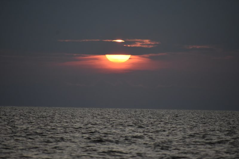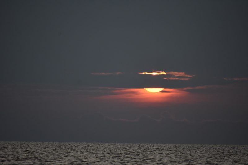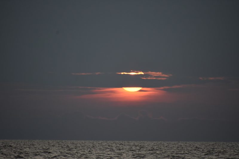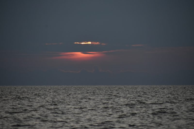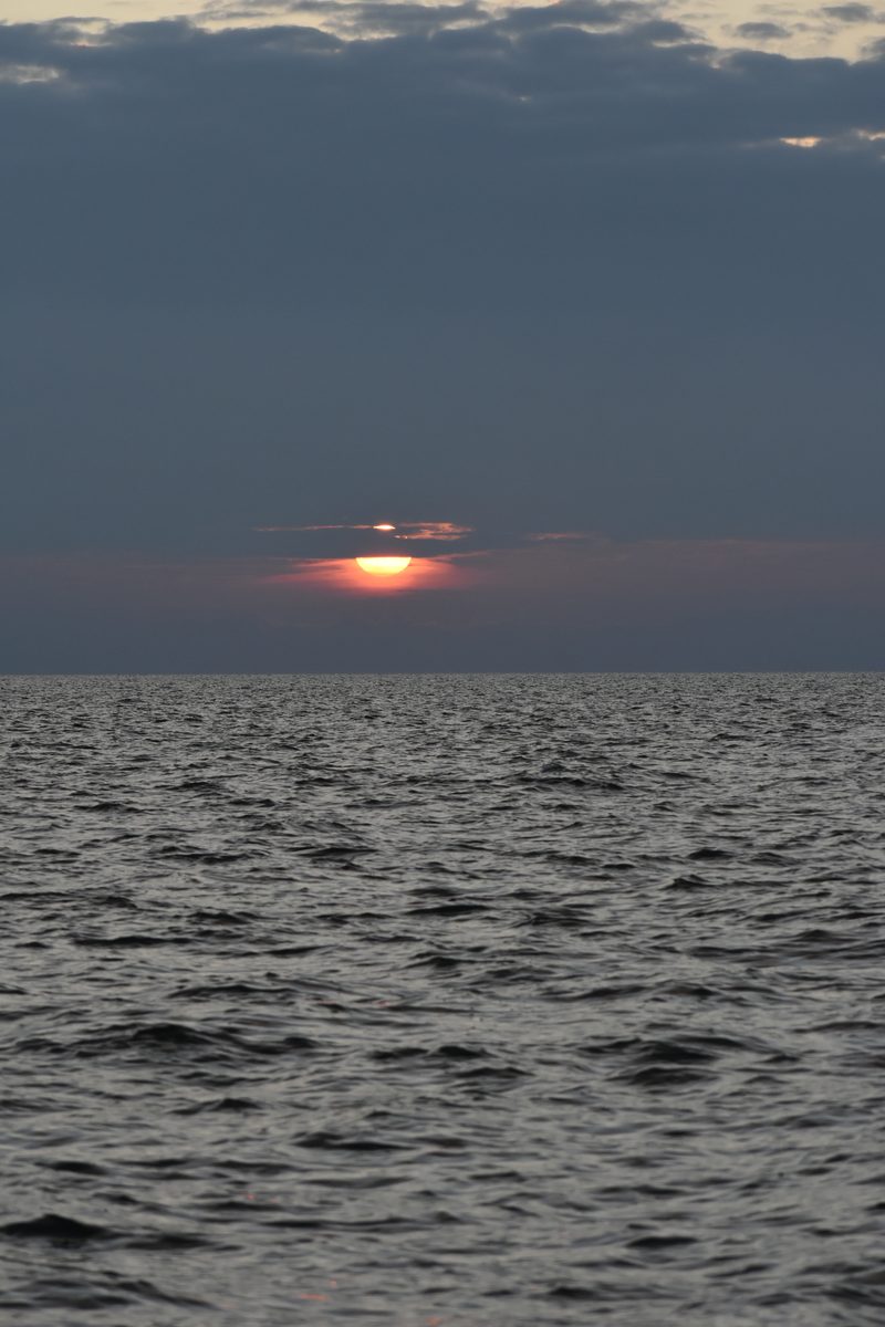 Ruszyliśmy na zachód, gdy słońce zaczęło swój ostatni zjazd. Bałtyckie światło w późnym lipcu robi coś niesamowitego: w ostatnich trzydziestu minutach przed zachodem słońca zamienia całe morze w miedź i złoto. Woda, zwykle szaro-zielona, stała się ciepła i świetlista.