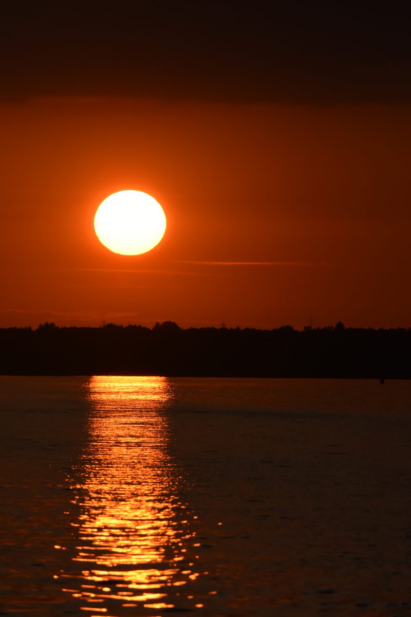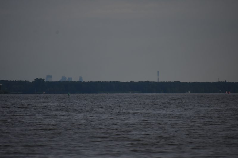 Tego lipcowego wieczoru warunki były idealne: gładka tafla, ciepły wietrzyk i wyjątkowa przejrzystość powietrza, dzięki której na horyzoncie wyraźnie rysowały się warszawskie wieżowce — oddalone o pełne 28 kilometrów w linii prostej.